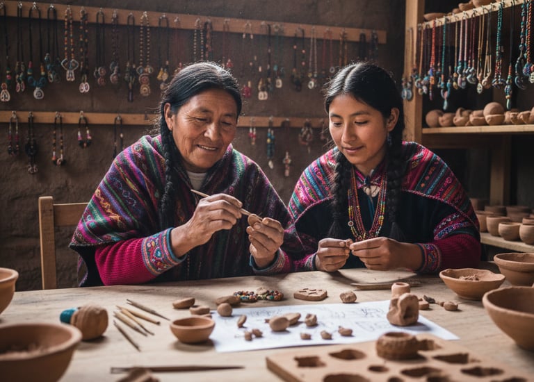 Raíz Nativa nace del corazón de Huarán-Cusco, donde mujeres artesanas crean joyas únicas con cerámica en frío, honrando la cultura Peruana.